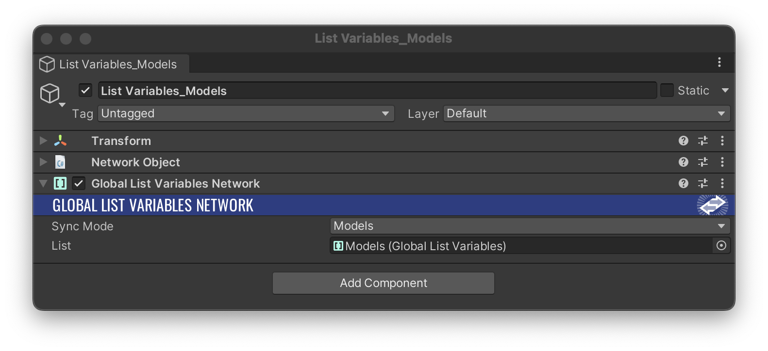 Models work the same way attachment does using Local List Variables Network or Gloal List Variables Network and select the Models sync mode