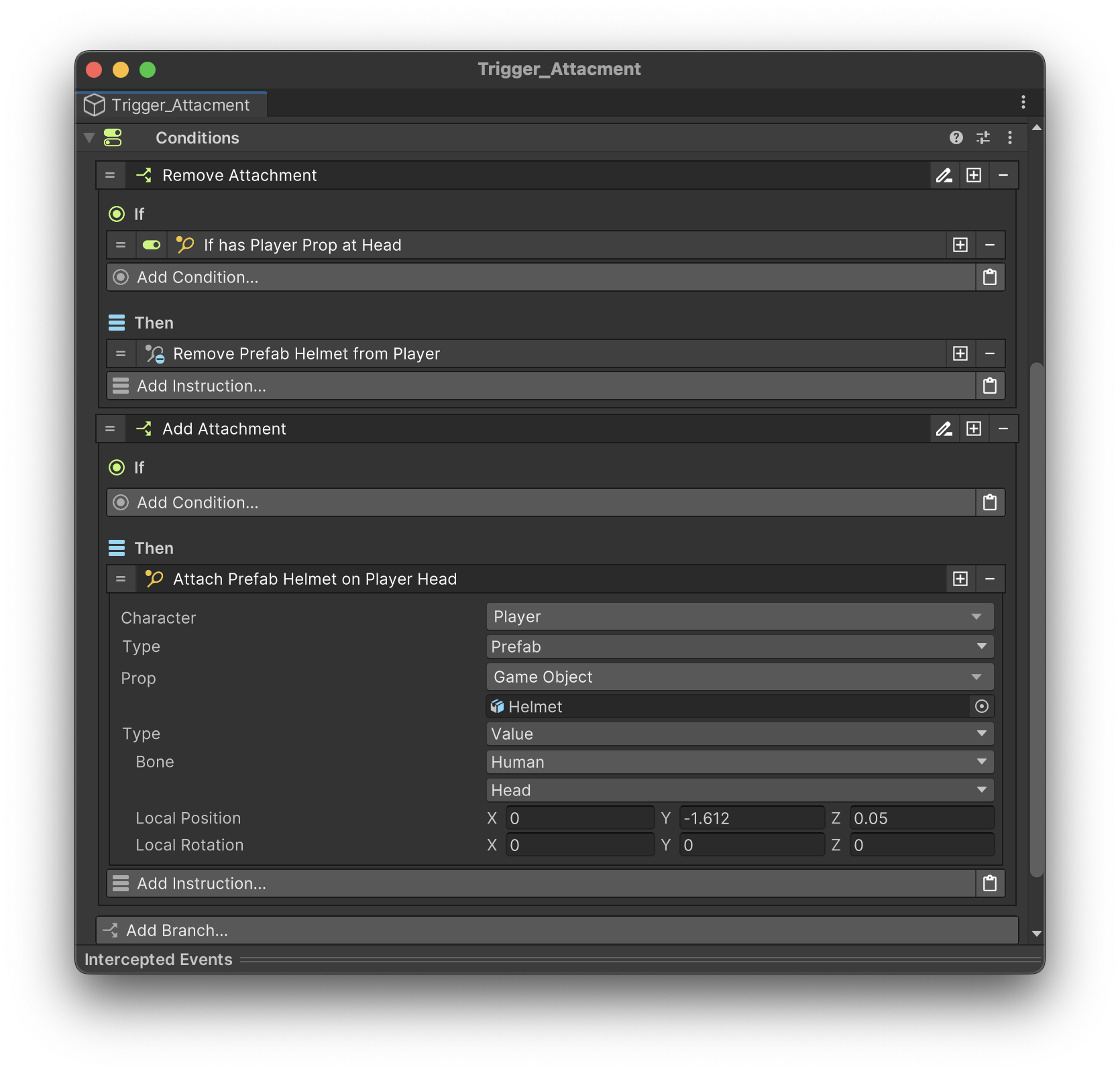 Once attachmets are registered you can use regular GC2 instructions to attach or remove objects