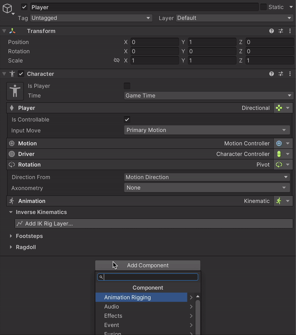 Setting up a Game Creator character for Fusion is simple. Just attach a Network Character component, and it will automatically add all the necessary components, making it ready to use.