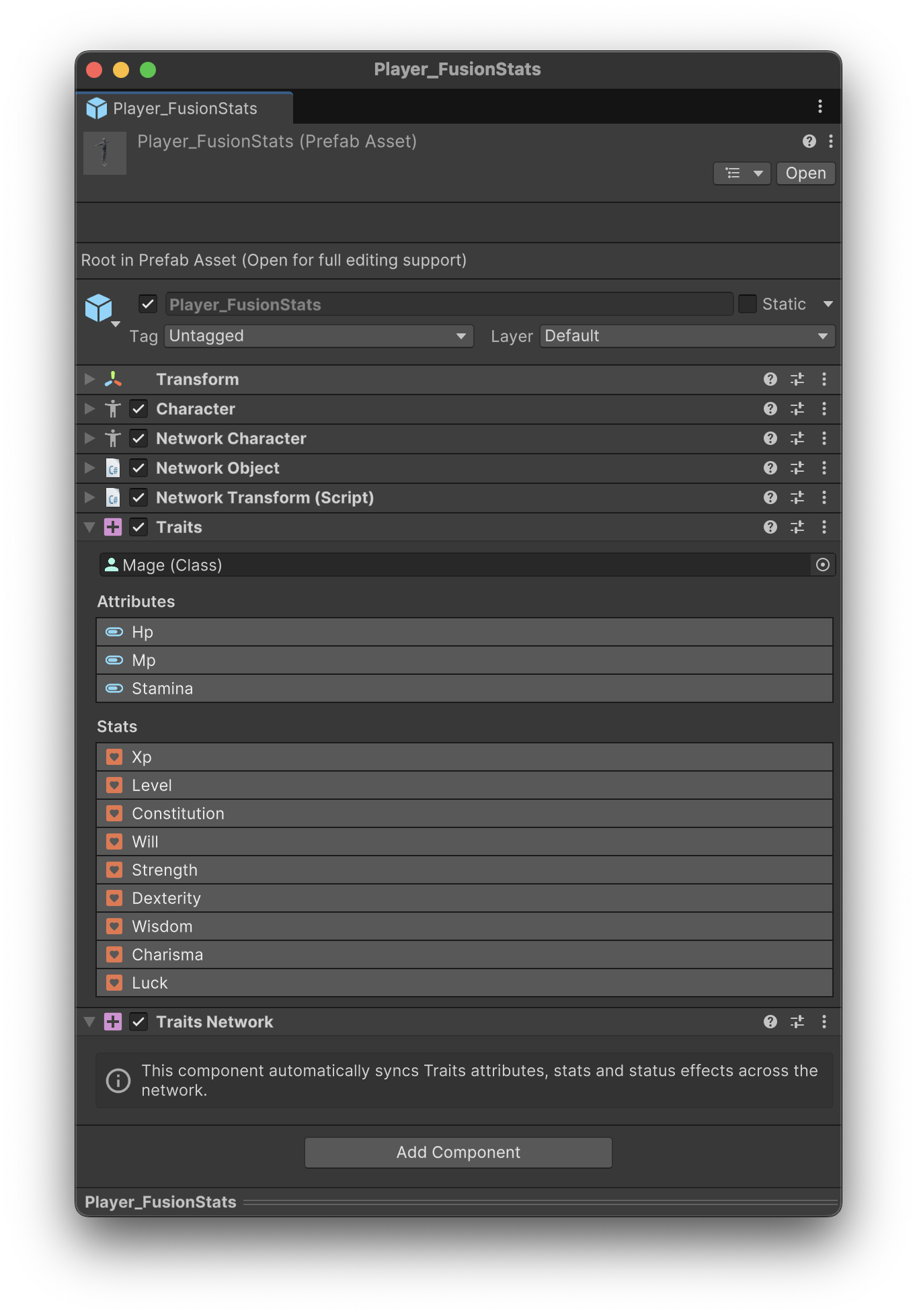 Synchronizes traits stats, attributes, status effects, modifiers across the network.