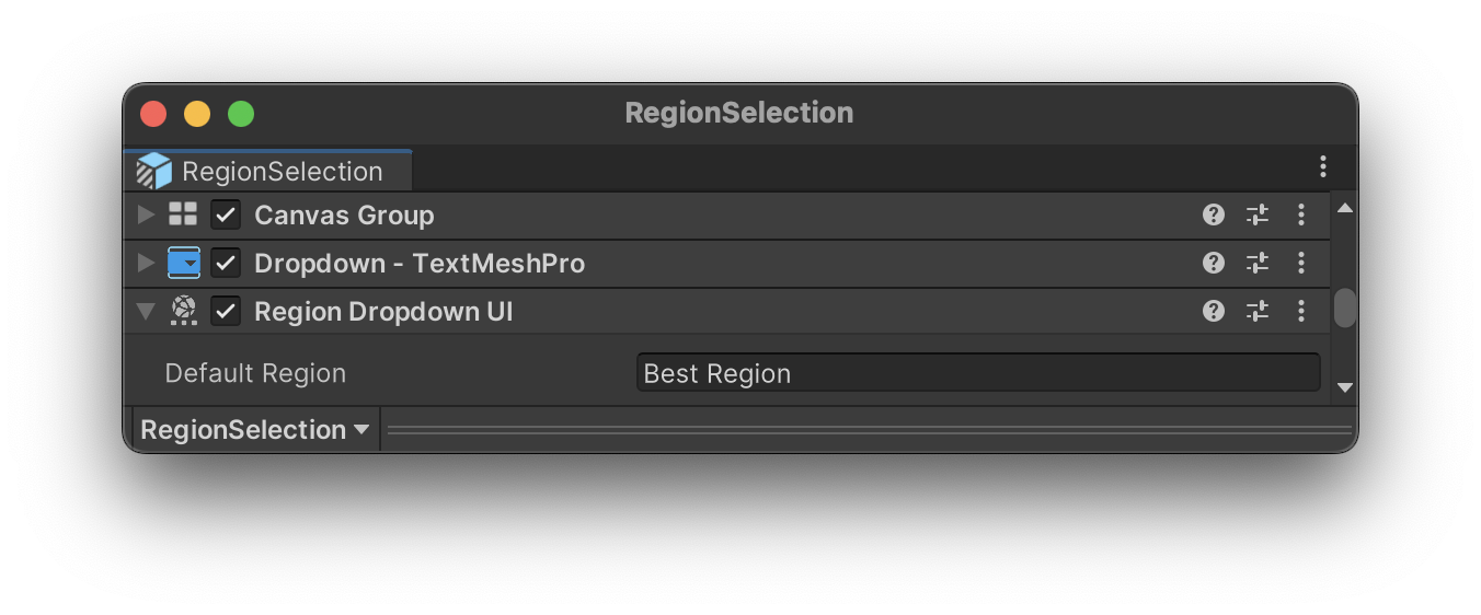 The selected region by this drop menu will be stored in player prefs. The selected region is accessibe through a Game Creator 2 string property.