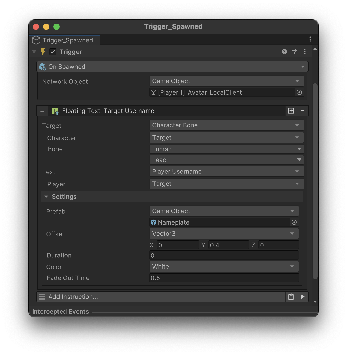 Floating text serves as an instruction to generate user interface text above a specific target. This feature is commonly utilized for displaying character nameplates, chat bubbles, and other similar elements.