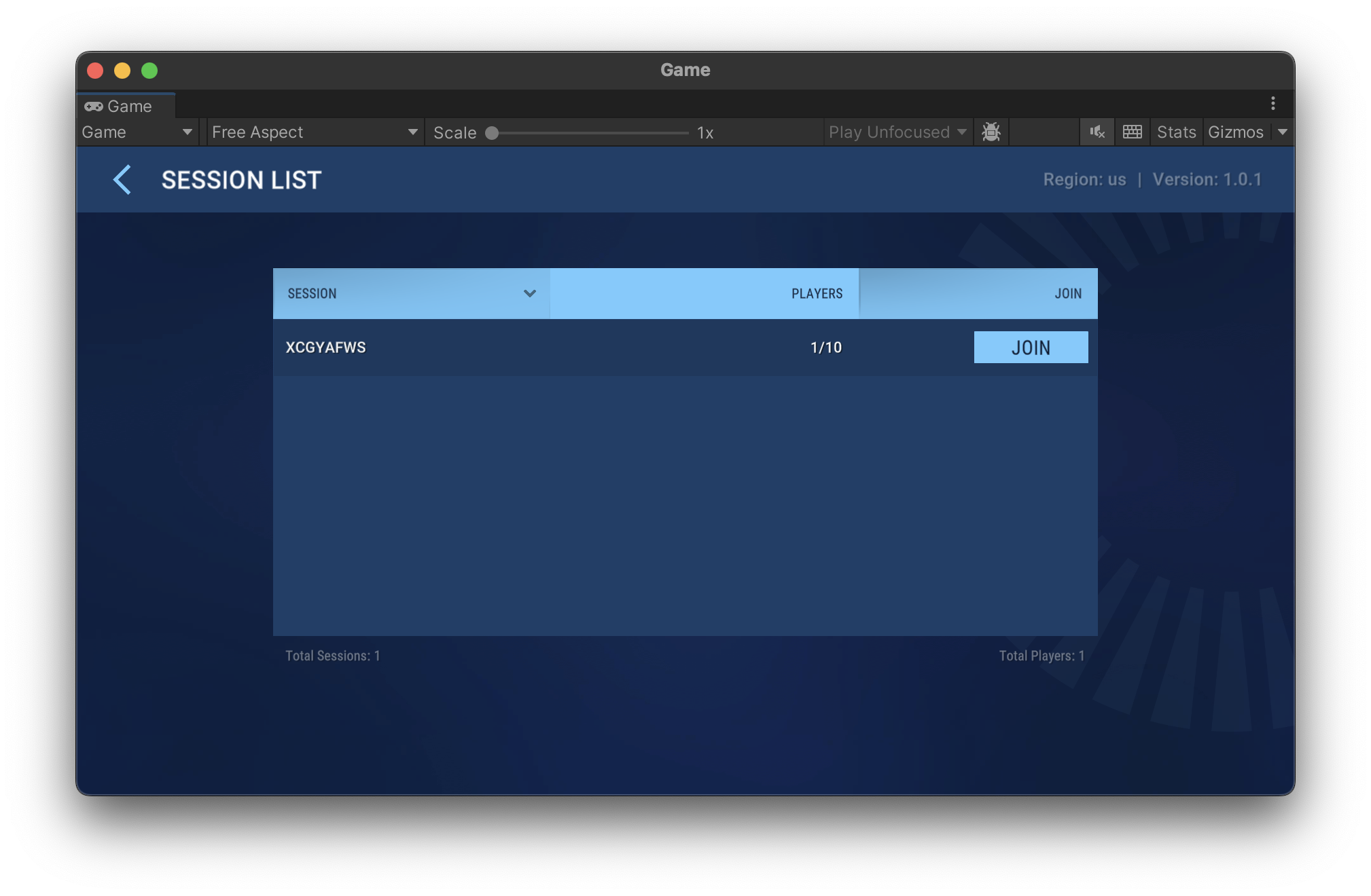 The Fusion UI package provides a ready-to-use prefab for the session list.