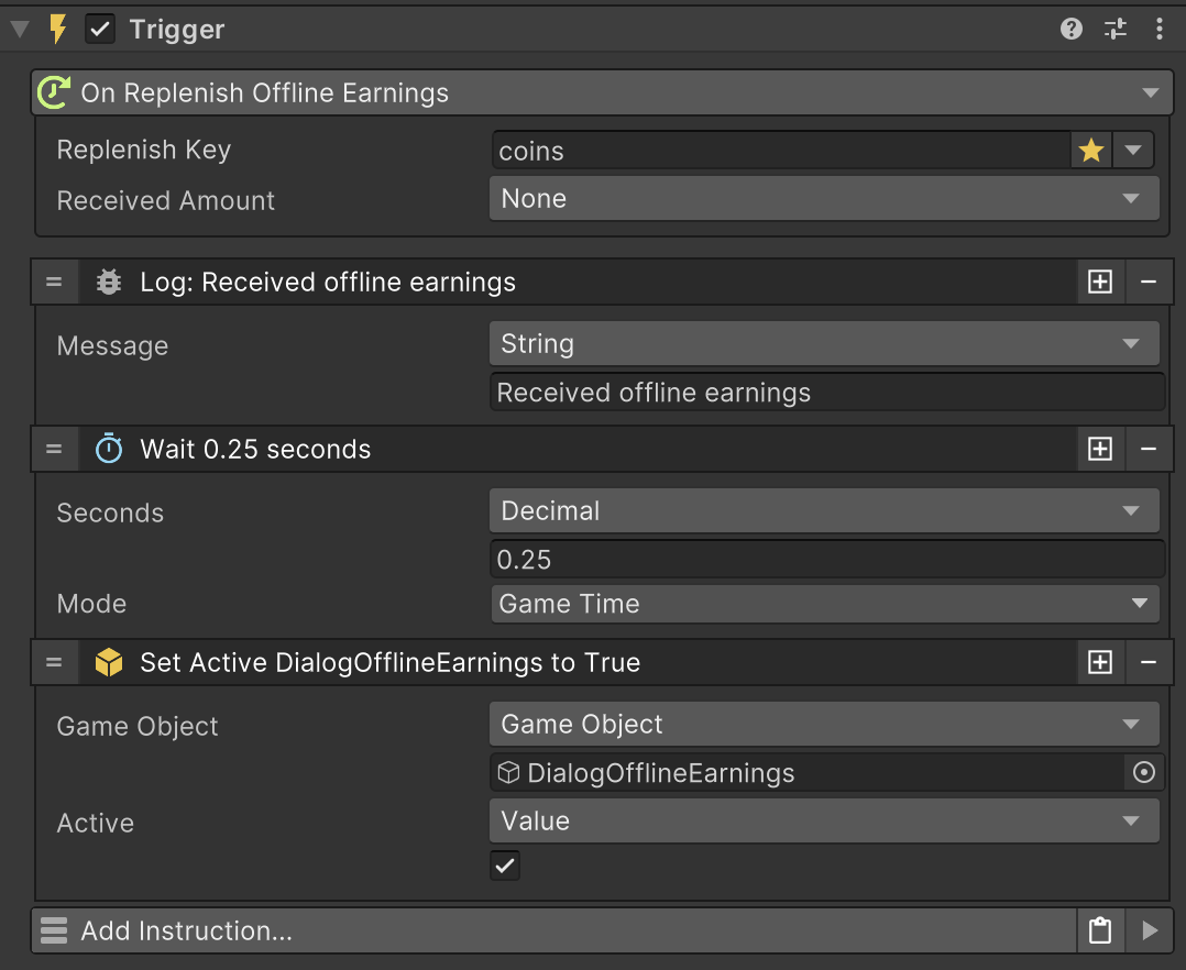 Offline earnings can be received manually by using a trigger.