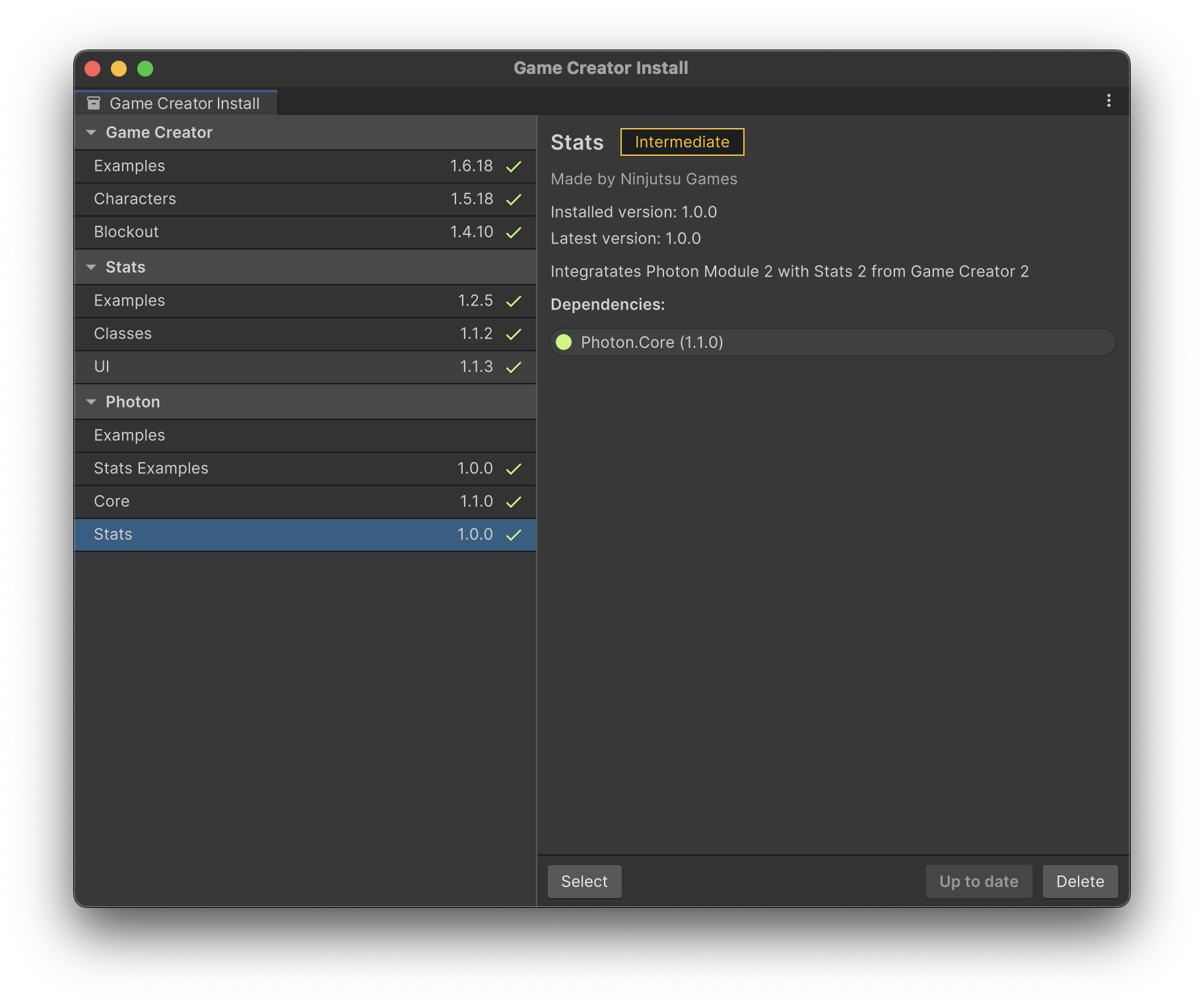 Finally bring up the ***Game Creator Install Window*** select the **Photon Stats** package and install it.